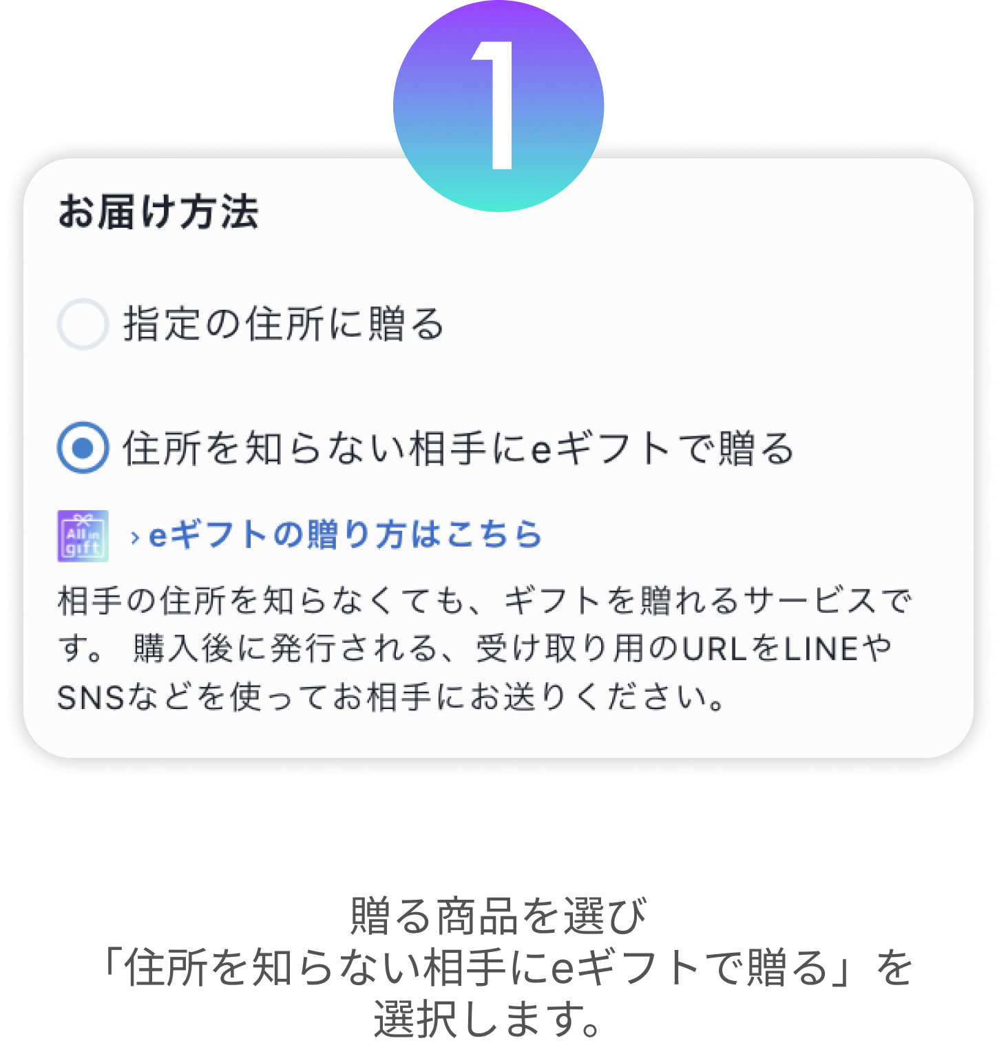 商品ページに「eギフト」の選択肢が表示されている商品が対象となります。